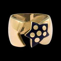 Sortija maciza de oro amarillo con estrella esmaltada en azul.